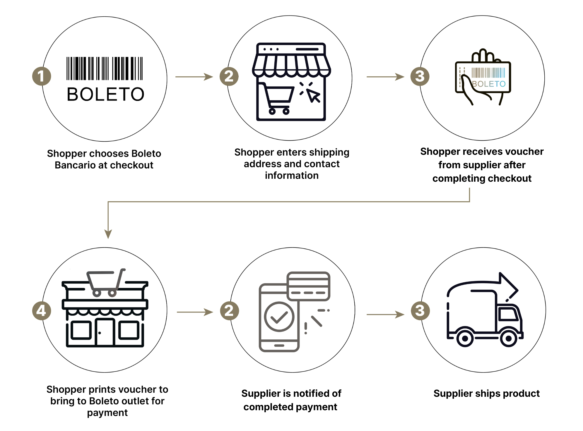 - Shopper prints voucher: The shopper prints the voucher to present at the Boleto outlet for payment.