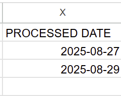 - Open the settlement CSV file and note the first and last processed PROCESSED DATE. You will need these dates in step 2.