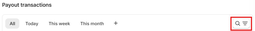 - Click the Search and Filter icon in the right corner of the Payout transactions pane.