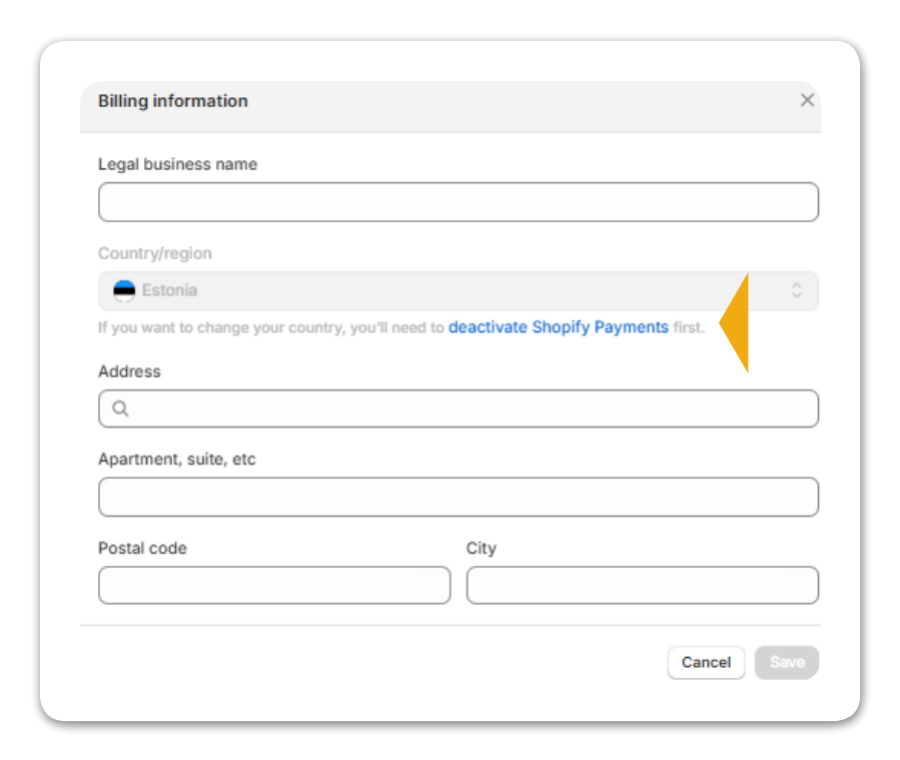 Under Store details, hover over Billing information and click the Edit icon next to the billing address.