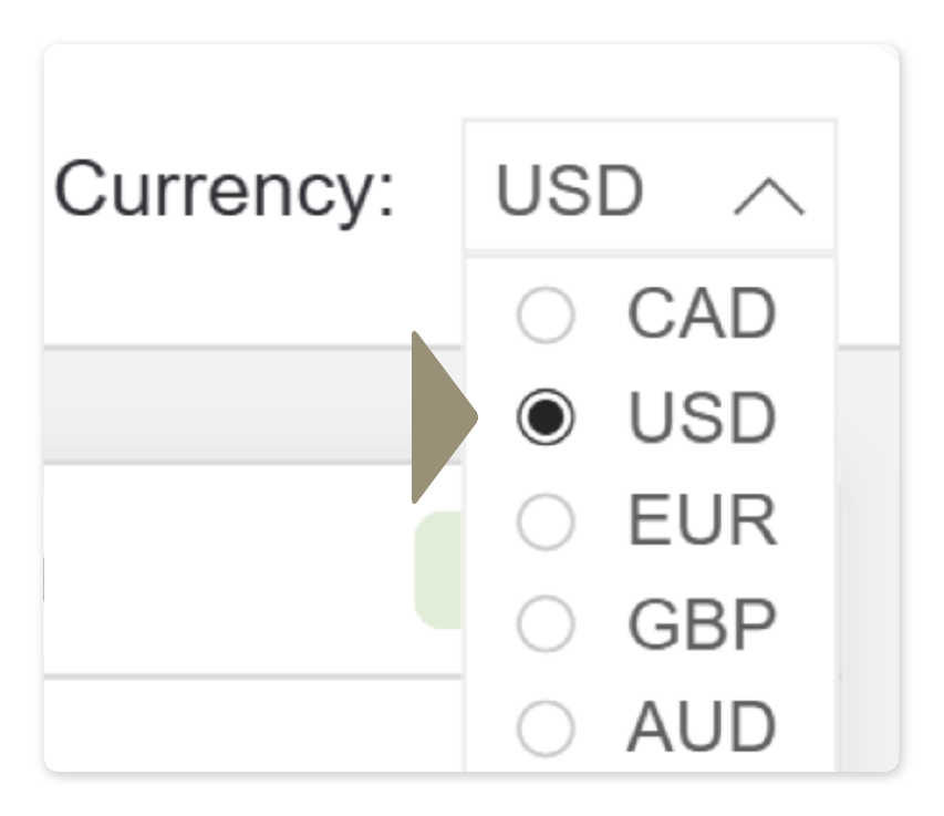 The dropdown menu only displays the currencies your store supports.