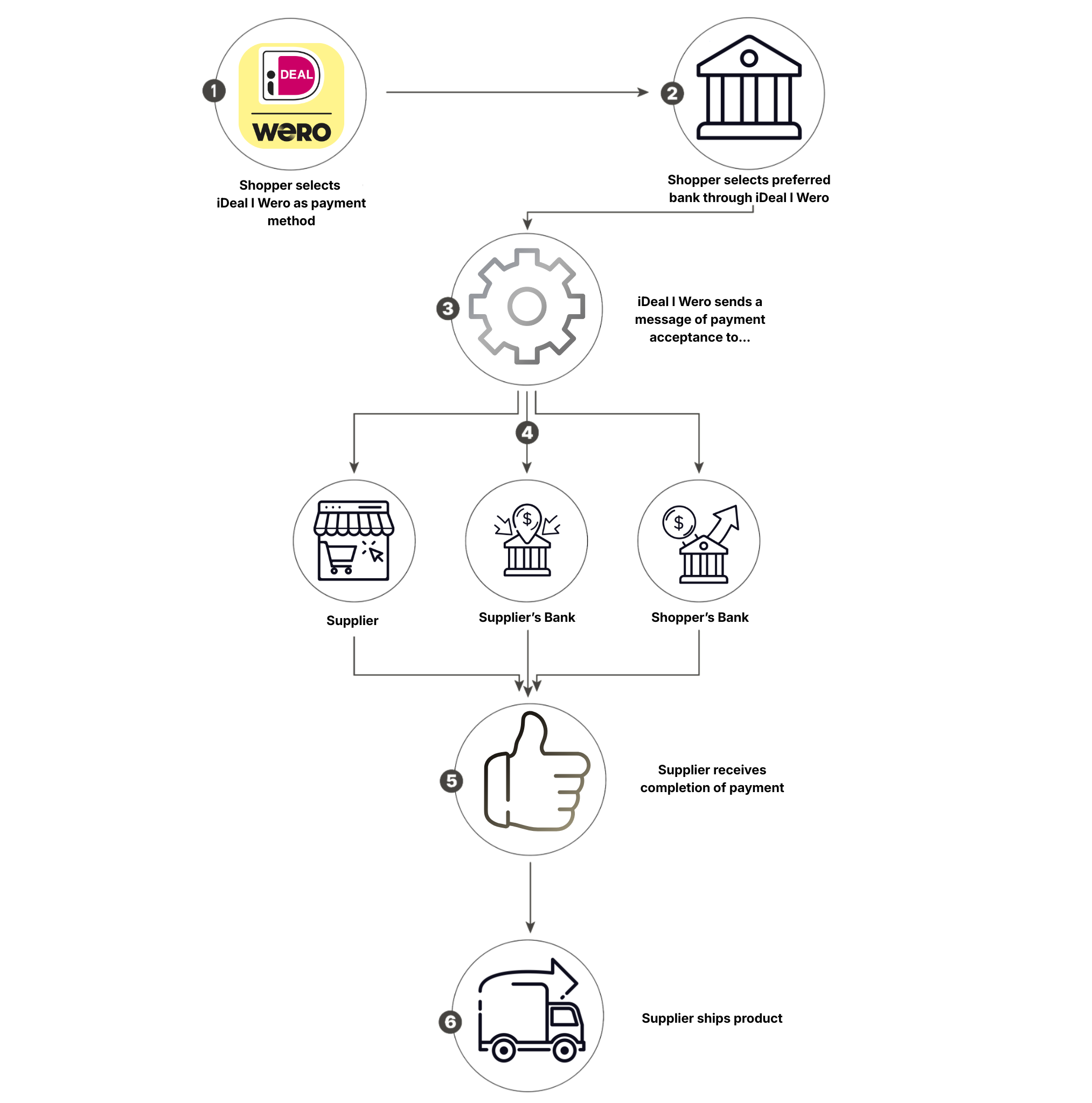 - Reach sees that the iDEAL | Wero payment has been completed (the shopper's bank has sent the acquirer's bank a guarantee of payment).