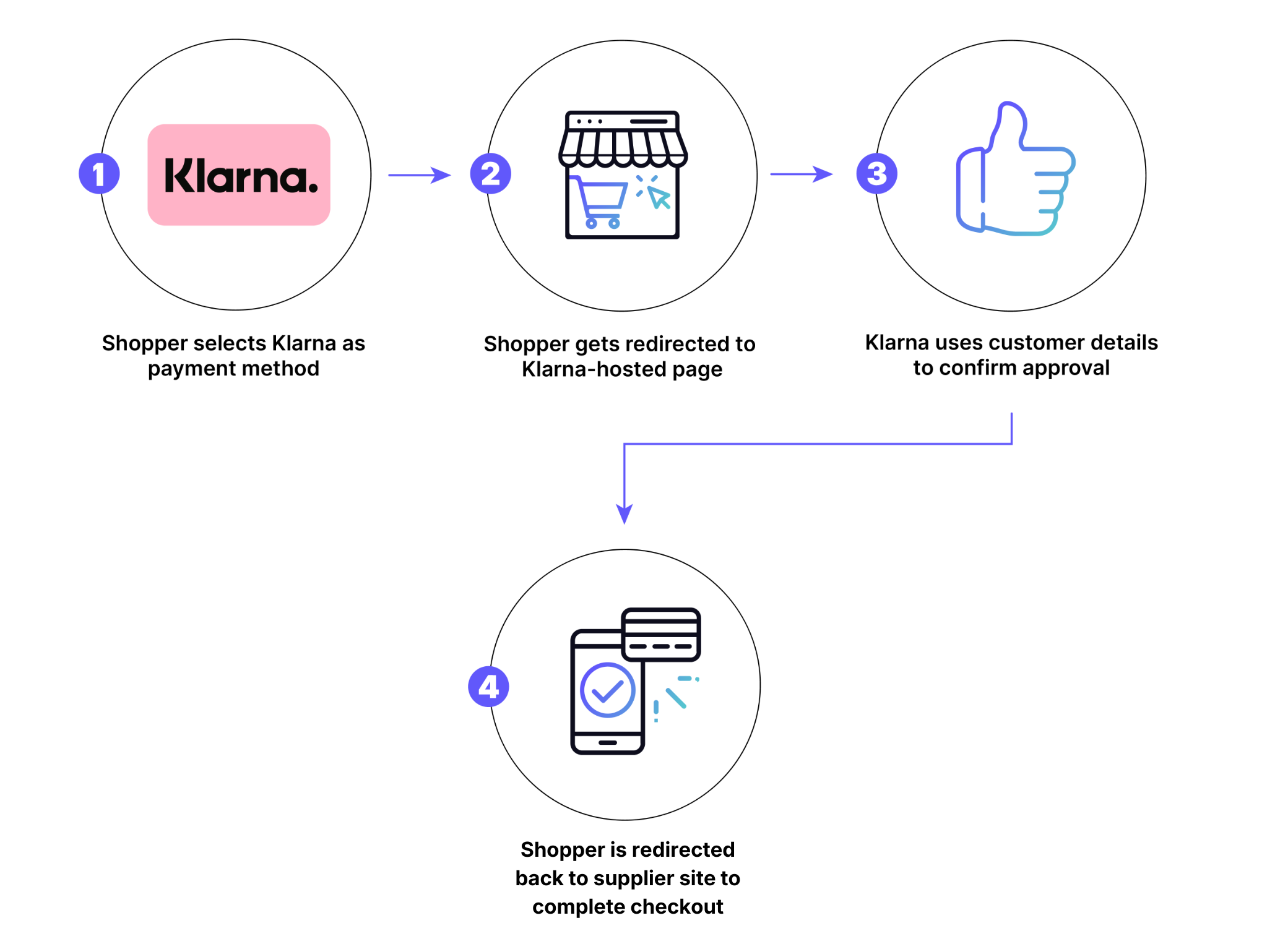 Implementing Klarna through Reach is as simple as integrating it with our other payment products. Once configured through our supplier support, when the customer checkout is rendered in a region where Klarna is available, the Klarna payment method will be visible for customer selection. When the customer selects Klarna, they will be redirected to Klarna’s hosted checkout page. When the customer completes their purchase, they are redirected to the supplier's site.