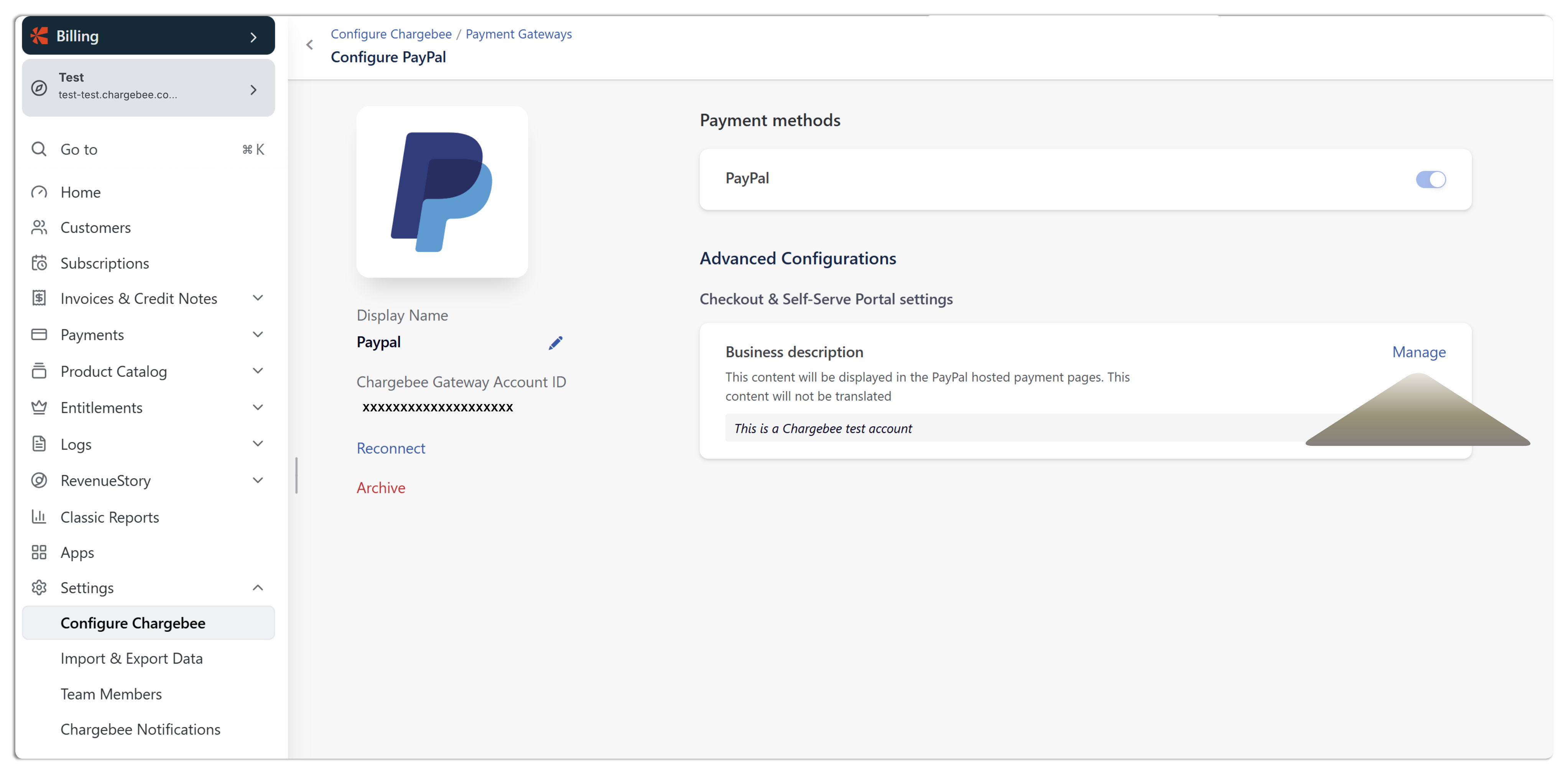 Add the PayPal gateway to Chargebee