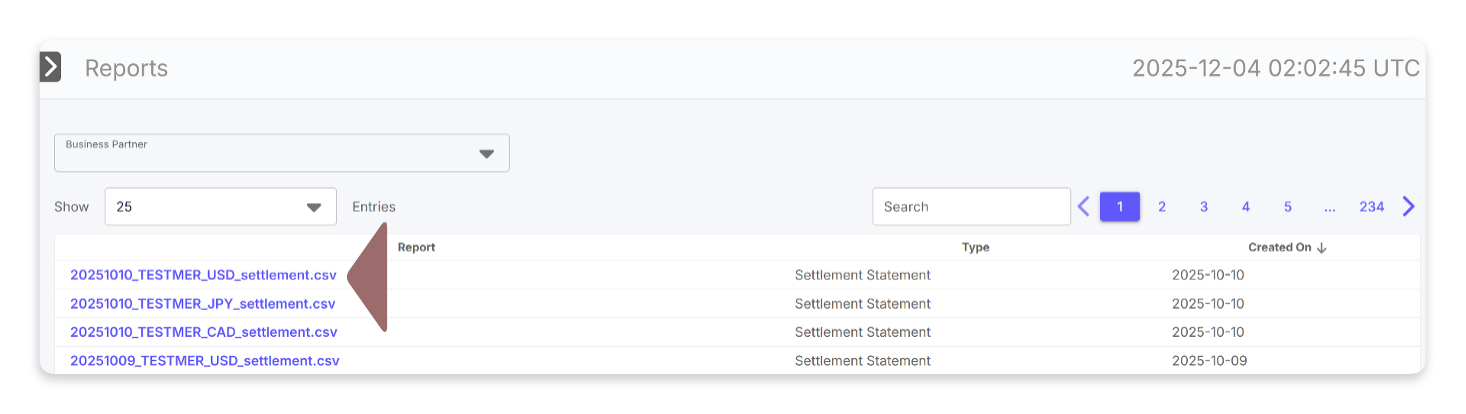 - Settlement detail report: a daily statement detailing your settlements, including transaction sell currencies, FX rates, settlement dates, and more.