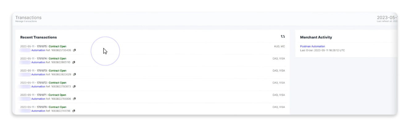 You can perform the following actions on the Recent Transactions and Merchant Activity panes and related windows.